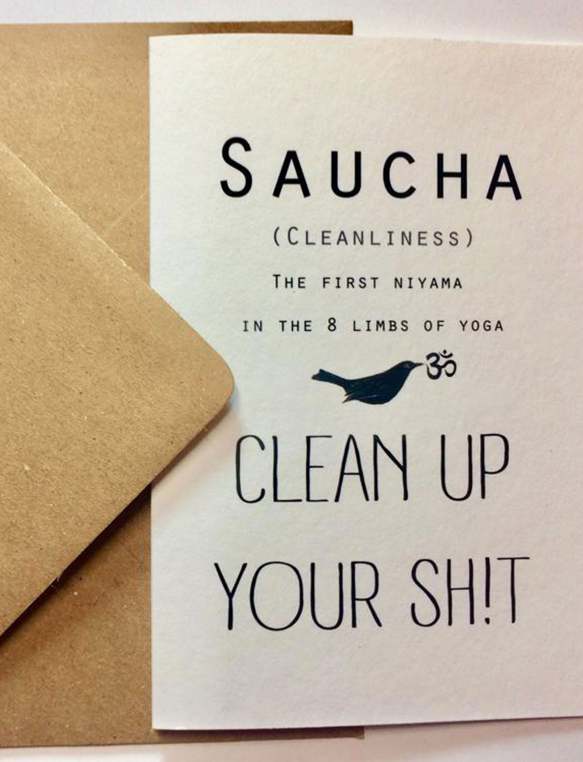 Saucha means “cleanliness and purity. Saucha does not simply stop at bathing each day, but also pertains to a deeper level of purity – purity on the inside, purity of thought and action. We must purify our thoughts through the practice of positive thinking. We must purify our lives by ensuring that our actions are models of integrity.